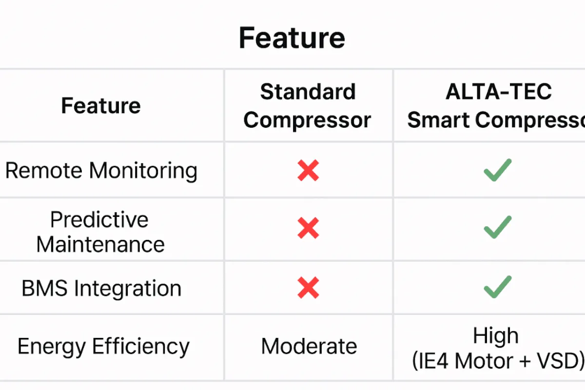 Smart air compressors include remote monitoring, predictive diagnostics, and electronic controllers that adjust performance in real time, helping reduce energy waste and downtime. Learn more about Pilot Air’s digitally integrated air compressors.